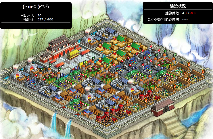 拠点構成は獲得資源量が多いので、本拠地軍事化と僻地軍事砦の2つ作ってる人が多い気がします。
