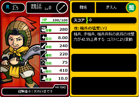 パラメータもちょっぴり追加。相変わらず贅沢です。張飛はどうした?