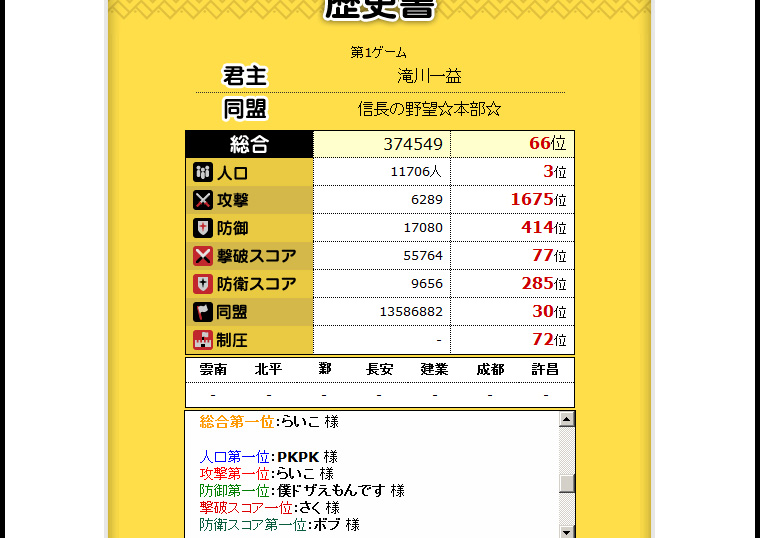 1期は戦争が1回だけ。砦も全く参加せず、攻撃スコアがとても低い。