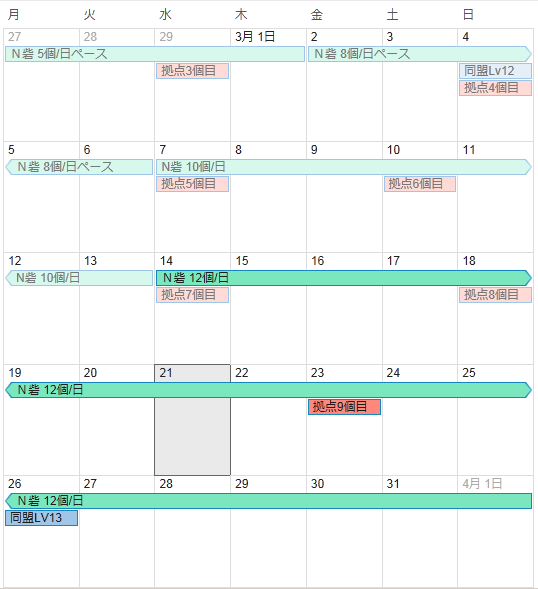 上のカレンダーは3期始まる前に立てた同盟の計画です。