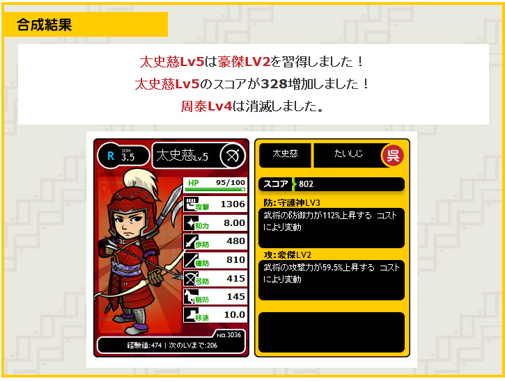 基本的には合成要員か。槍兵突覇とか加工知識、隠しで魏王の号令だ。