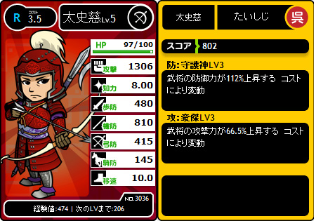 UC孫翊を追加合成でLV3になりました。