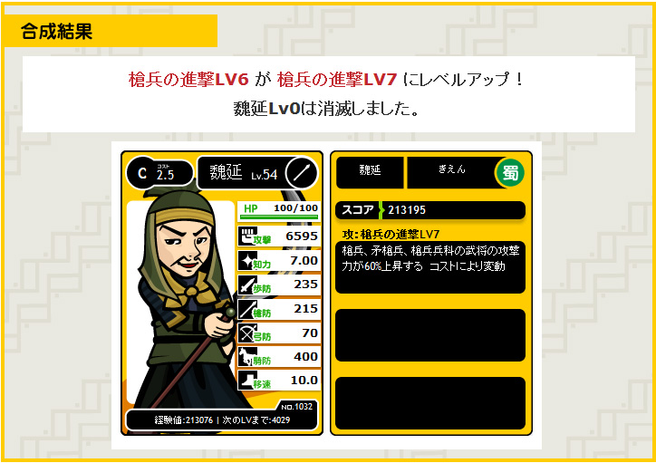 私に入ったTPは手数料が引かれ、諸葛亮1060TP、厳顔126TPとなりましたとさ。