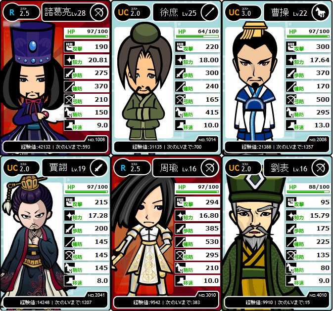 コスト高いのは嫌われることもありますが、やはり奇計や内政スキルが